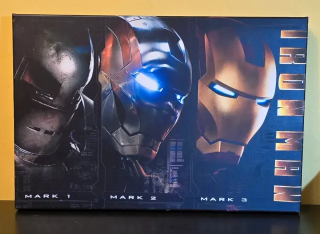 Product detailsPieza en lienzo inspirada en Iron Man de Marvel Comics. Muestra la evolución de las armaduras Mark 1, Mark 2 y Mark 3.