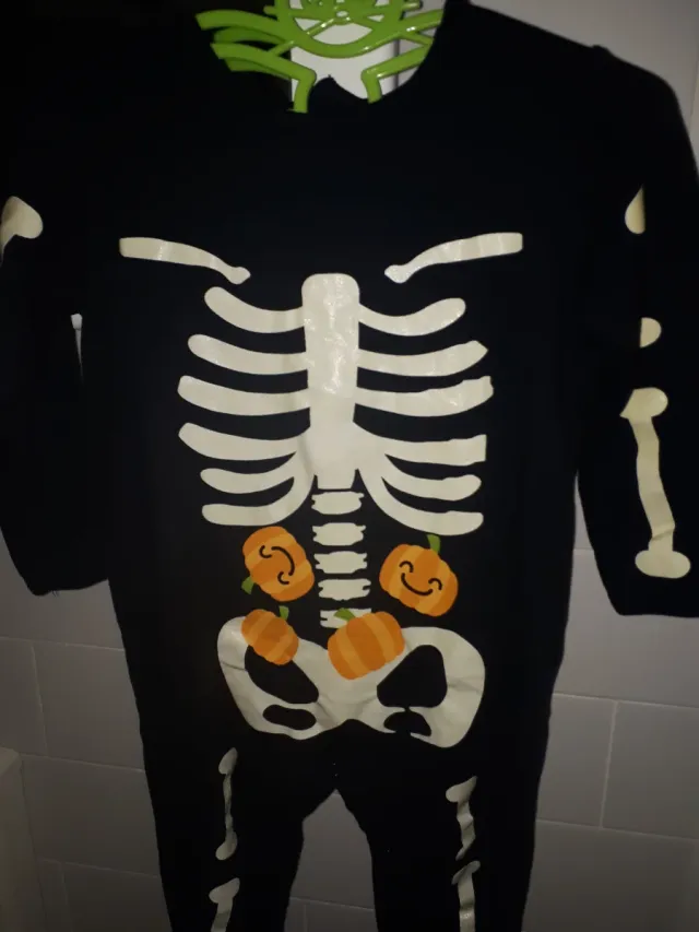 Vendo trajecito- pijama de Halloween, Cotton Juice, talla 24- 36 meses. En perfecto estado. En la oscuridad se ven los huesecillos