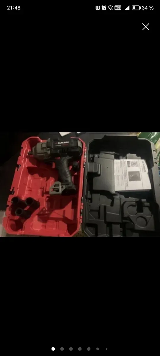 Pistola de impacto de la marca Parkside Performance. - Modelo: 1800Nm. - Incluye maletín de transporte. - Incluye varios vasos. - Diseño ergonómico.