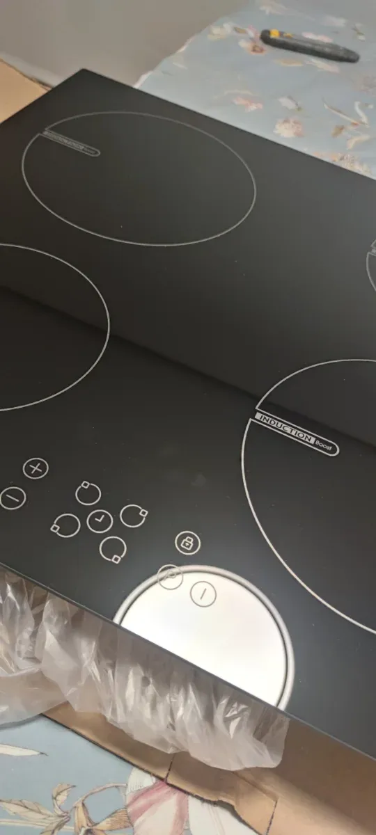 Product detailsPlaca de inducción de cristal negro con cuatro zonas de cocción.