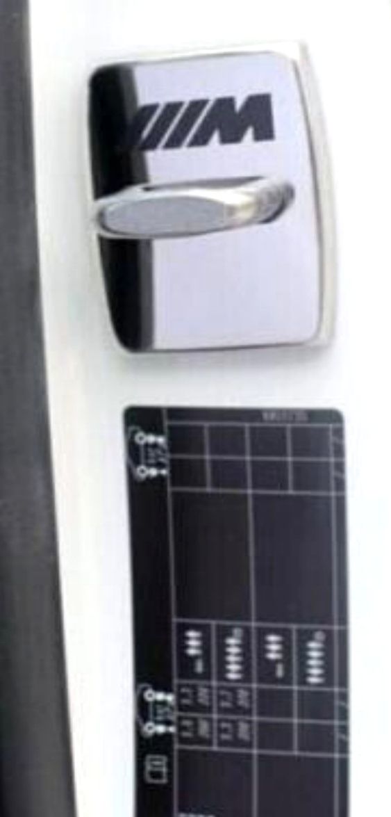 Conjunto também de 4 peças de Placa metal com símbolo M para parte interna no pilar do veículo