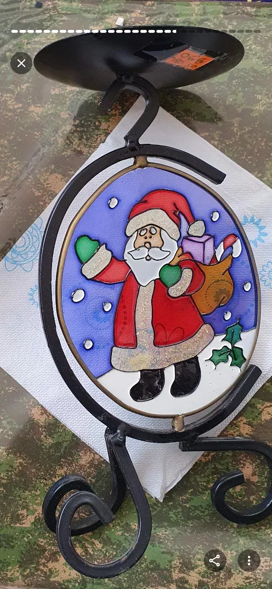 Portacandele navideño de Papá Noel de vidrio pintado