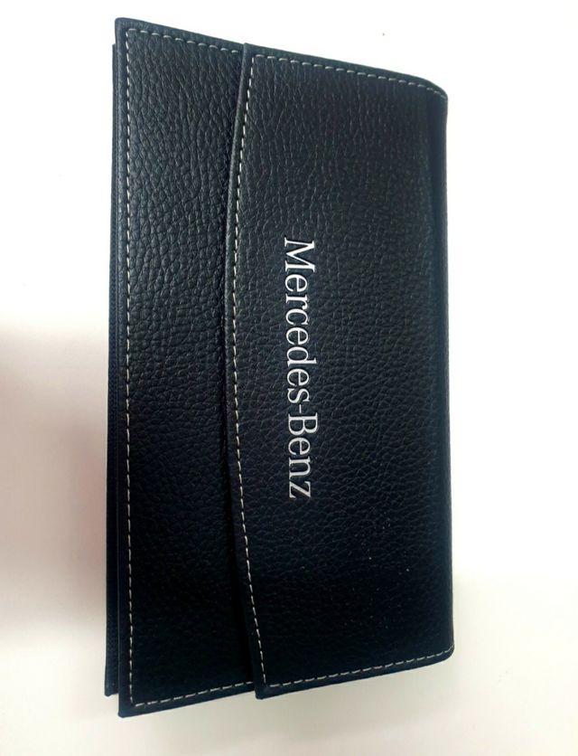 Vendo elegante portadocumenti Mercedes Benz, in pelle nera. - Colore nero - Materiale: similpelle - Cuciture a contrasto chiare - Logo Mercedes Benz impresso