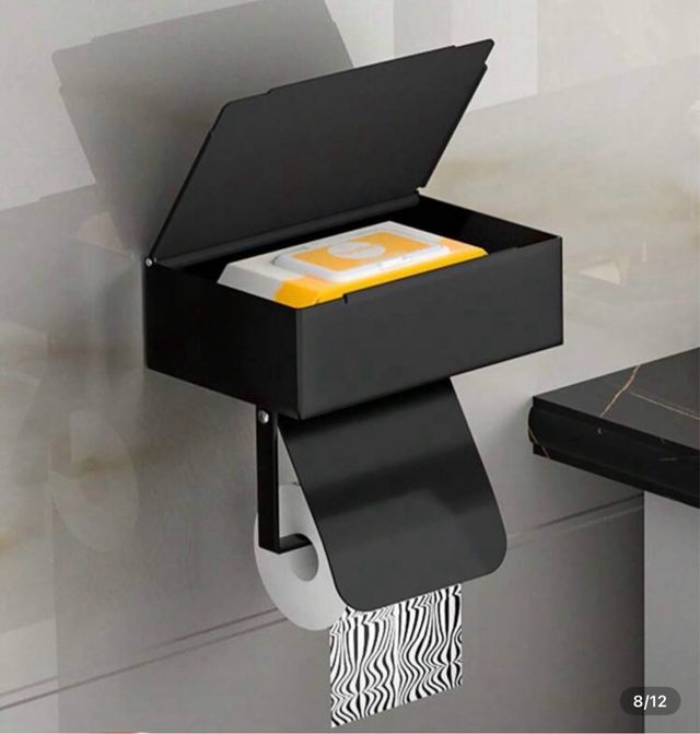 Portarrollos y dispensador de toallitas negro