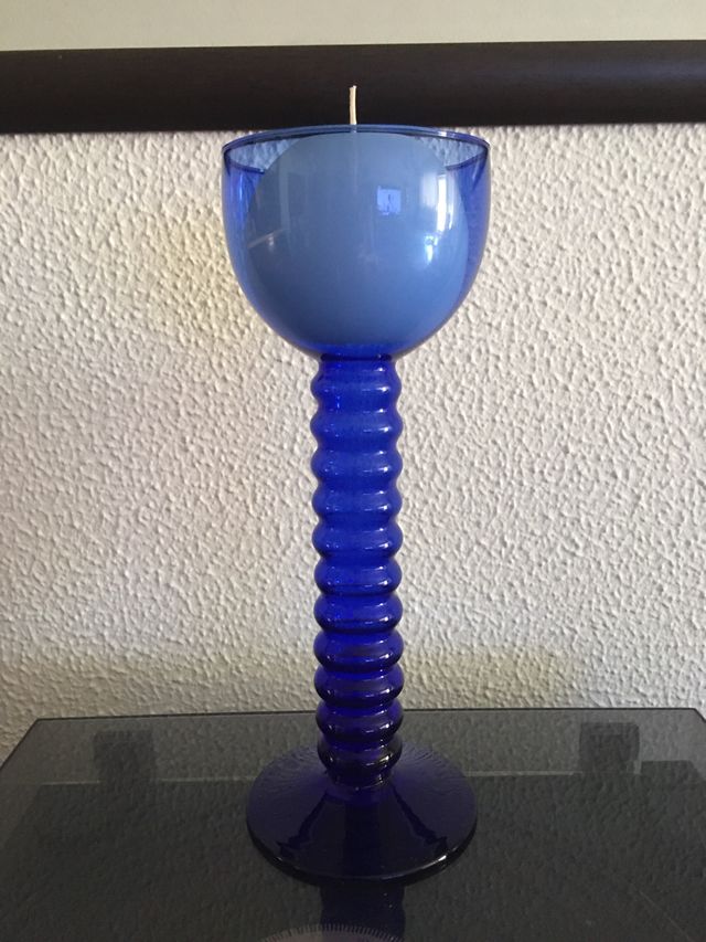 Portavelas hecho a mano azul cobalto SIN VELA… Solo la pieza alta… ( La foto donde se ven dos es un ejemplo de composición )