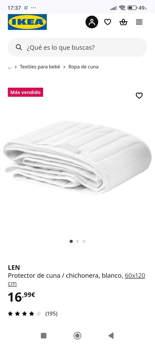 Protector de cuna marca LEN en color blanco. - Medidas: 60x120 cm.