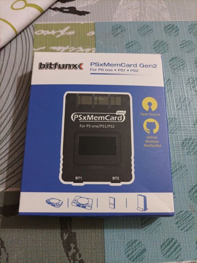 Product detailsTarjeta de memoria PSxMemCard Gen2 de Bitfunx, compatible con PlayStation One, PS1 y PS2. Diseño de código abierto.