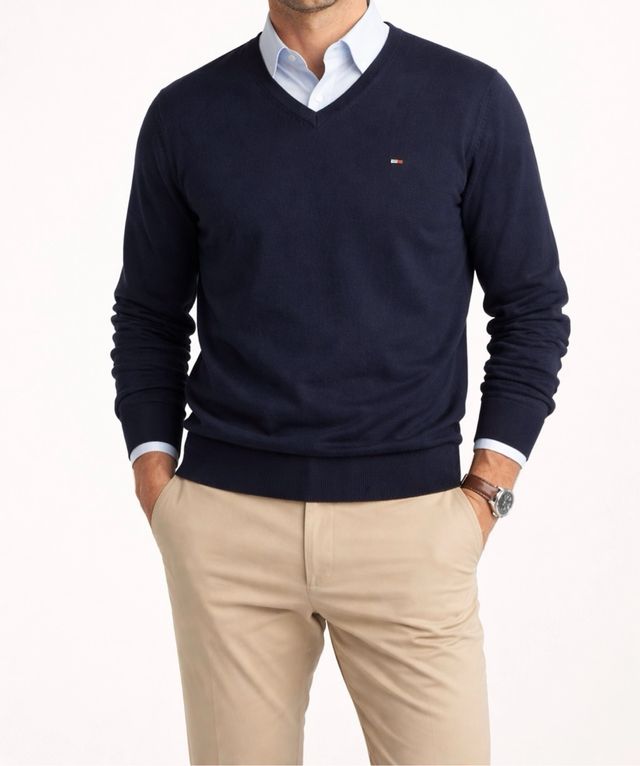 Jersey azul con cuello en V de Tommy Hilfiger, talla M