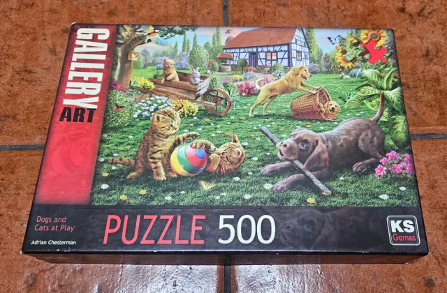 Product detailsPuzzle de 500 piezas de la colección Gallery Art, titulado Dogs and Cats at Play por Adrian Chesterman.