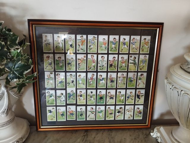 Product detailsQuadro decorativo com uma coleção de 50 cartões de cigarros antigos com ilustrações de jogadores de Rugby.