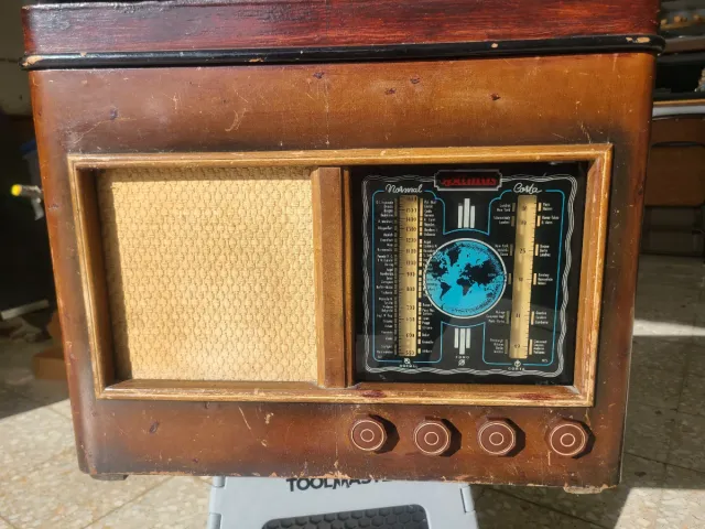 Radio tocadiscos de la marca Optimus. - A valvulas. - Necesita reponerse el volante del dial