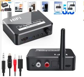 Product detailsReceptor Bluetooth 5.0, conversor de audio digital a analógico. Entrada/salida para fibra óptica SPDIF a 3,5 mm AUX 2 RCA, amplificador para altavoces. Kit para coche.