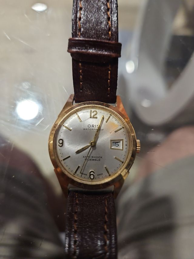 Product detailsElegante reloj Oris de fabricación suiza, con un diseño vintage y un acabado chapado en oro.