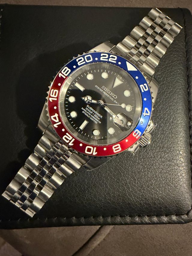 Product detailsReloj Seiko modificado con un diseño inspirado en el clásico estilo Pepsi, ideal para coleccionistas y entusiastas.