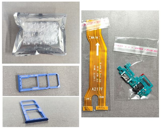 Repuestos para Samsung Galaxy A21s: - Bandeja SIM azul 3€ - Flex y placa de carga 5€ - Cámara macro 4€ Todo el lote 8€
