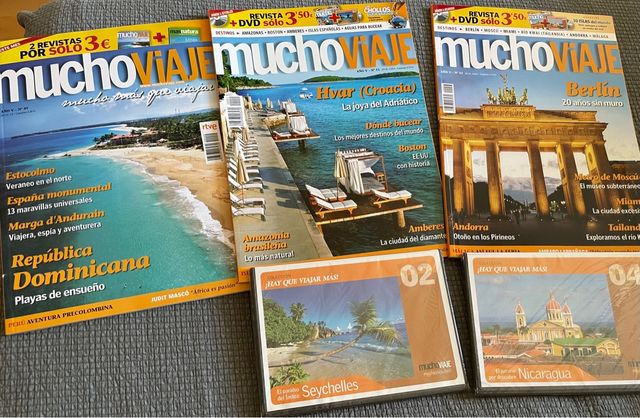 Lote de 3 revistas, dos de ellas acompañadas por DVD monográfico de 30 minutos sobre un destino turístico. También se venden por separado a 1€ cada cosa (revista o DVD).