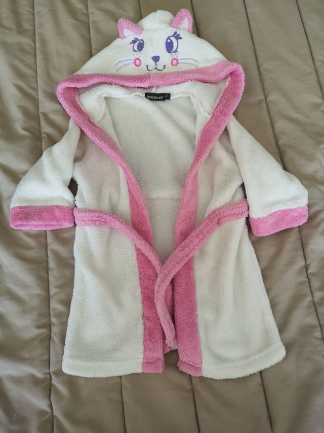 Product detailsRoupao infantil felpudo, tamanho 6/9m com capuz em formato de gatinho. Ideal para os pequenos se aquecerem após o banho.