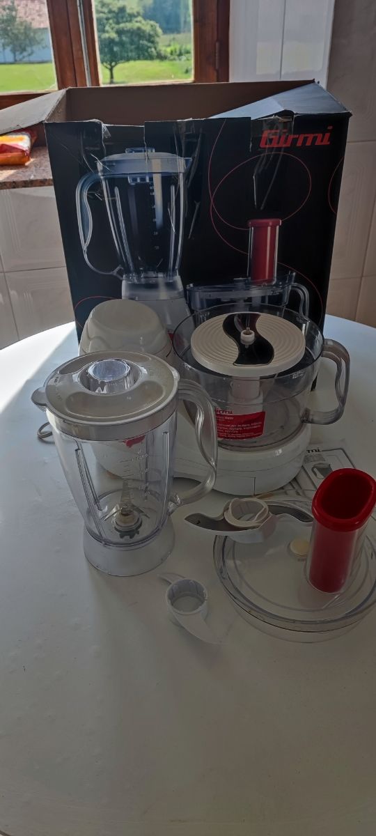 Product detailsrobot de cocina marca Girmi, con muy poco uso con 10 accesorios para picar , licuar, rallar, cortar , amasar, batir y montar . con doble sistema de seguridad y 6 velocidades más pulso. Con caja porta accesorios . caja original y manual de instrucciones. A recoger en Madrid o Asturias