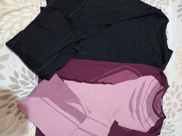 Conjunto de ropa térmica para esquí o actividades al aire libre. - Dos conjuntos de camiseta y mallas térmicas talla 12 - Gorro y dos pares de guantes talla 10-12