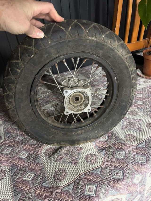 Rueda de pit bike con llanta de radios. - Llanta de radios. - Neumático con dibujo. - eje de 15 mm