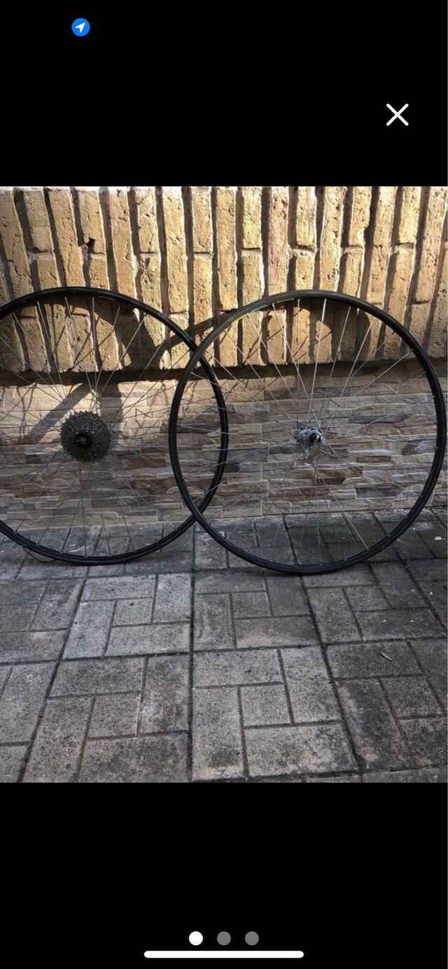 Juego de dos ruedas de carretera. - Rueda delantera con buje plateado. - Rueda trasera con buje plateado sin cassette