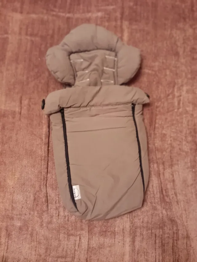 Sacco termico imbottito, ideale per passeggini e ovetto. Colore beige neutro. - Materiale esterno resistente. - Fodera interna morbida. - Apertura con zip. - Cappuccio imbottito.