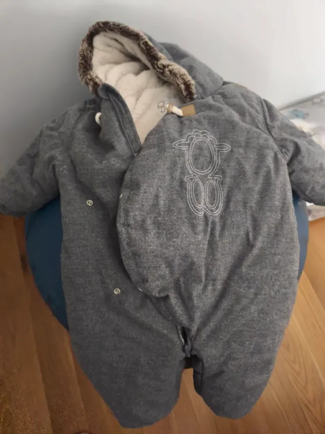 Product detailsSaco de bebé de invierno, talla 12-18 meses. Es gris y muy calentito.