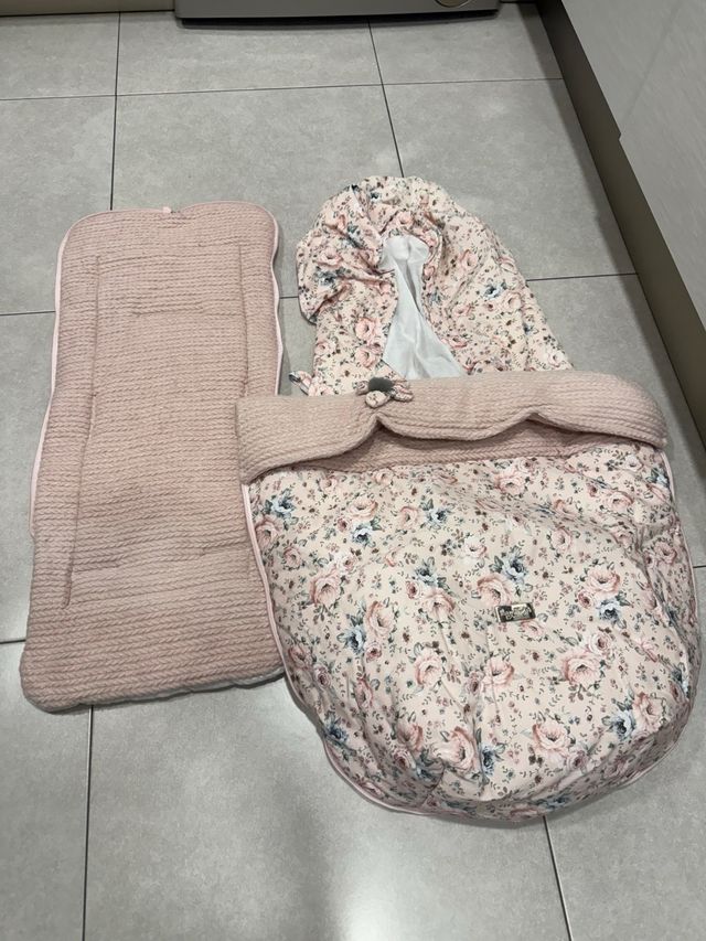 El juego se compone de funda para capazo, colchoneta y saco. Comprado en el corte ingles.