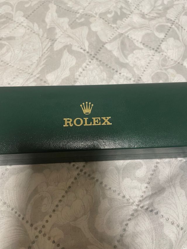 Elegante scatola da viaggio originale Rolex, perfetta per custodire il tuo orologio. - Colore verde scuro. - Logo Rolex dorato impresso.