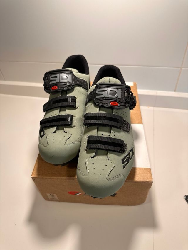 Product detailsZapatillas mtb Sidi Trace 2 practicamente nuevas. tan solo utilizadas un par de veces en spinning, ligero rasguño del pedal de la bici estatica. Muy muy bonitas. Incluye calas