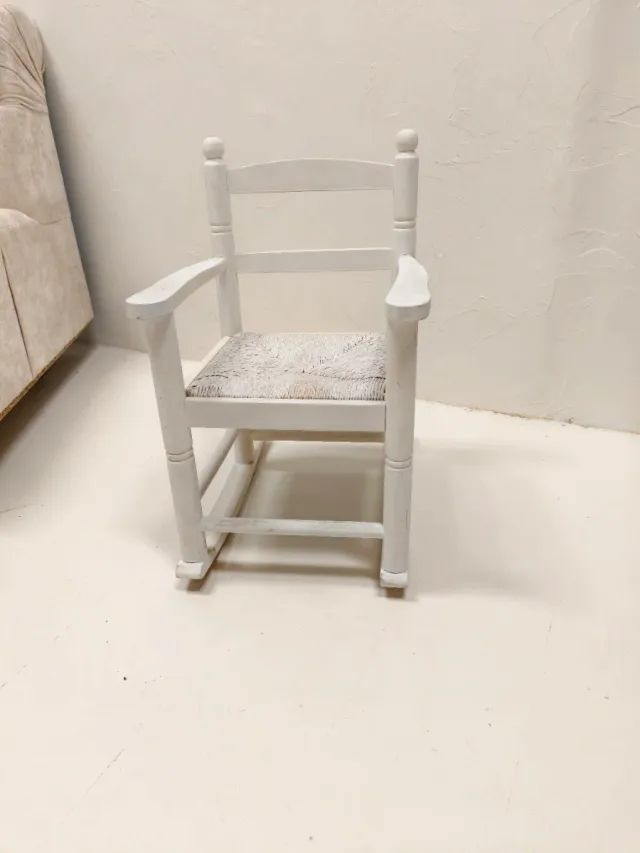 Product detailsAdorable silla mecedora de madera, perfecta para los más pequeños. Su diseño clásico y color blanco la hacen ideal para cualquier habitación.