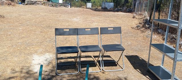 Sillas plegables negras y plateadas