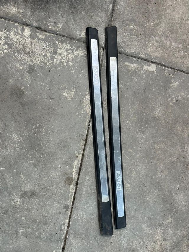 Conjunto de soleiras para Audi A3 8P de 3 portas. - Design com logo Audi. - Acabamento em metal e preto.