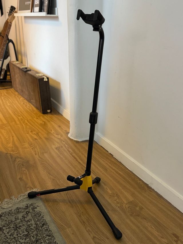 Características: Suporte de guitarra com suporte auto-fechante especialmente adequado para guitarras com formas de corpo especiais Altura ajustável: 85,5 - 107,5 cm Peso: 1,7 kg Tamanho de transporte: 71 cm x 15,5 cm Capacidade de carga: 15 kg
