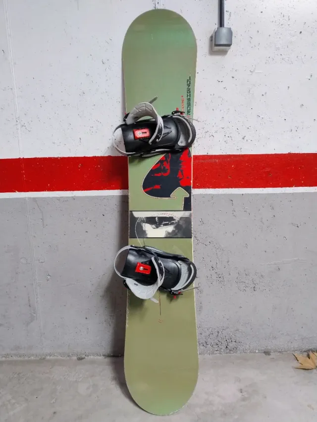 Tabla de snowboard Rossignol con fijaciones (HC500 Rossignol). 160 cm largo. Ancho central 26 cm. Ancho máximo en extremos 31 cm.