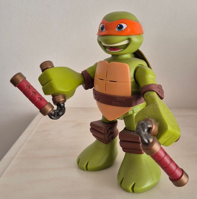 Figura de ação das Tartarugas Ninja, Michelangelo. - Detalhes fiéis ao personagem. - Inclui nunchakus como acessório.