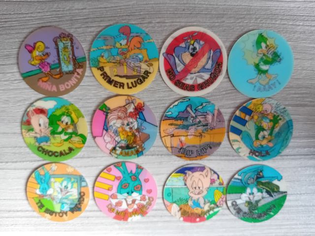 Product detailsLote de 12 tazos del año 1994. Los tazos se coleccionaban comprando bolsas de chucherías de Matutano. Se trata de una edición dedicada al mundo de Warner Bross. Según cómo mires el tazo se ven 2 movimientos.