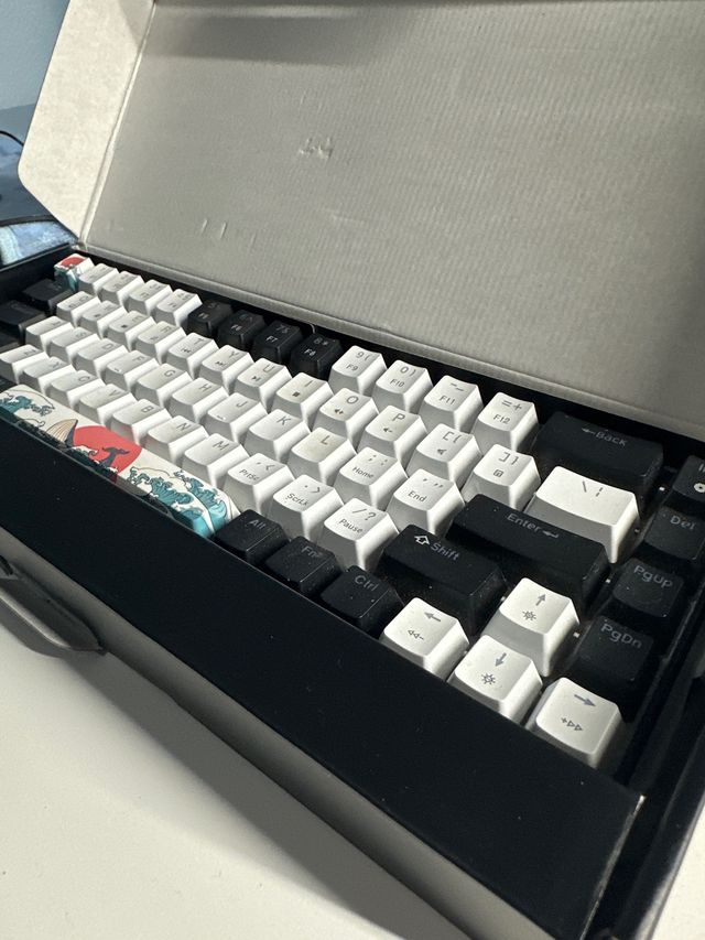 Teclado mecánico con switches azules, ideal para una experiencia de escritura táctil y sonora.