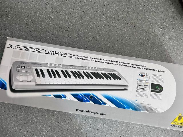 Product detailsVendo teclado controlador MIDI USB Behringer U-Control UMX49 con 49 teclas. Solo se usó una vez para probarlo y ha estado guardado en su caja original desde entonces. Está en estado impecable, prácticamente nuevo. Incluye todo lo que venía en la caja.