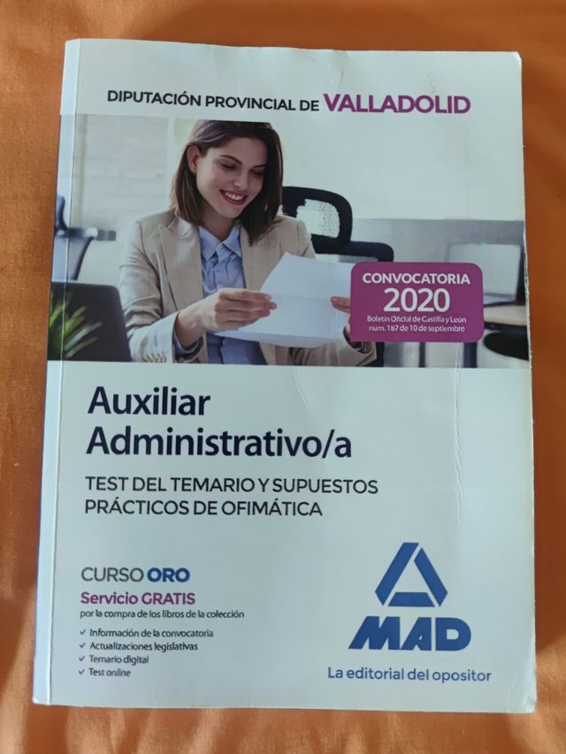 temario auxiliar administrativo con test y supuestos de ofimática. es del 2020 pero son las preguntas genéricas comunes. muchos test resueltos a lápiz fácilmente borrable, de ahí el precio