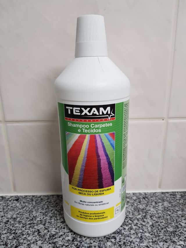 Product detailsShampoo para carpetes e tecidos Texam, em ótimo estado. Ideal para limpeza de fibras naturais e sintéticas.