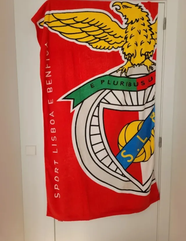 Toalha oficial do Sport Lisboa e Benfica, perfeita para praia ou piscina. Ótimo estado