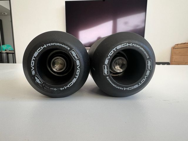 Topes anticaída de la marca Evotech para Honda CB650R. Diseñados para proteger tu moto en caso de caída. - Fabricados en aluminio y POM. - Color negro.