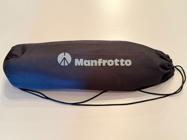 Manfrotto Compact Advanced, Trípode Fotográfico con Rótula 3 Way , para Cámaras Réflex Digitales (DSLR) y Dispositivos Digitales de hasta 5kg de Peso, MKCOMPACTADV-BK, Negro, Cierre con cordón, Logo de Manfrotto en blanco. Está nuevo, solo se ha usado una vez para una sesión de fotos.