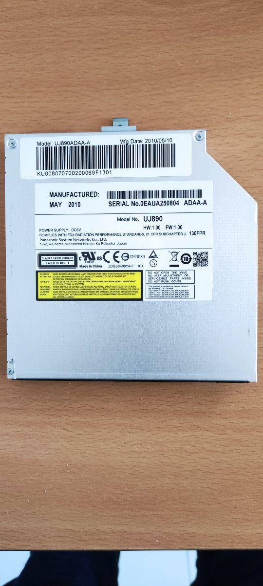 Product detailsUnidad óptica DVD para portatil con conector SATA. Modelo Panasonic UJ890. Funciona perfectamente y sirve para la mayoría de modelos de ordenador portatil standar. Regalo el embellecedor frontal de la foto. Entrega en mano en Santander y Astillero. También envios