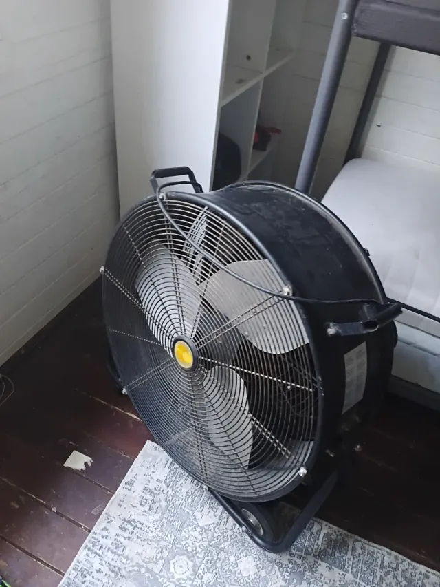 Product detailsPotente ventilador industrial de color negro, ideal para mover grandes volúmenes de aire.