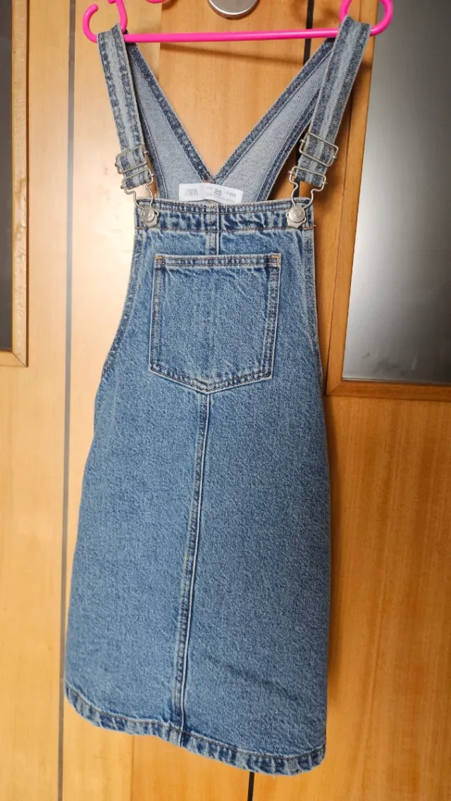 Vestido em ganga da Zara para menina. - Tamanho: 5/6 anos - Cor: Azul - Material: Ganga - Detalhes: Bolso frontal, alças ajustáveis