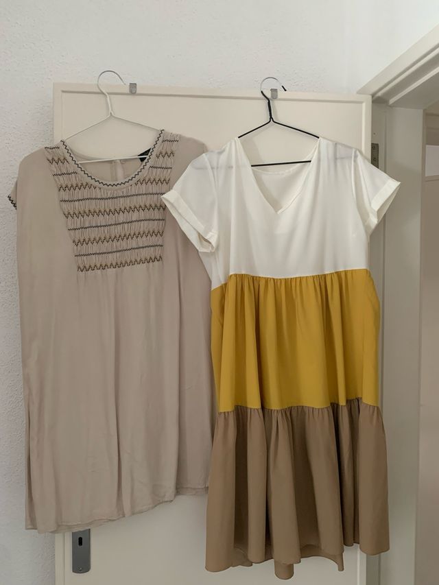 Vestidos cortos beige y amarillo