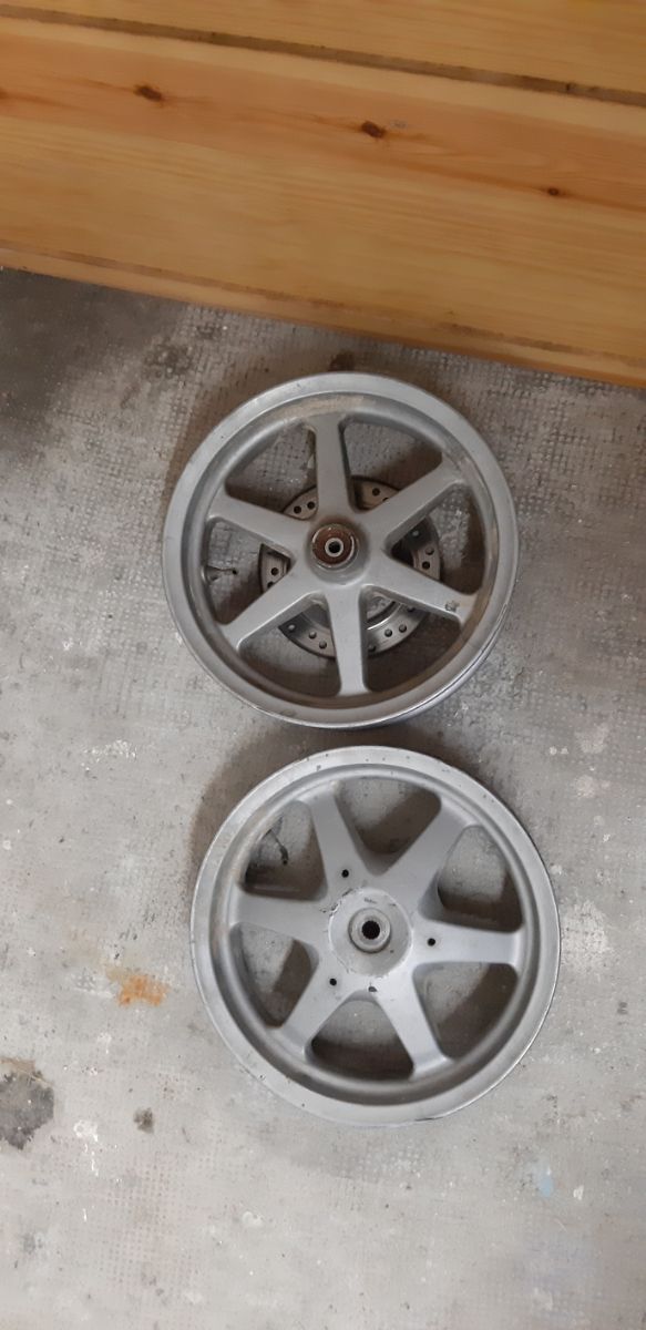 Vendo llantas para yamaha jog, con disco delantero incluido, puedo vender el disco suelto. 20 euros cada llantas y 10 el disco. 40 todo junto.