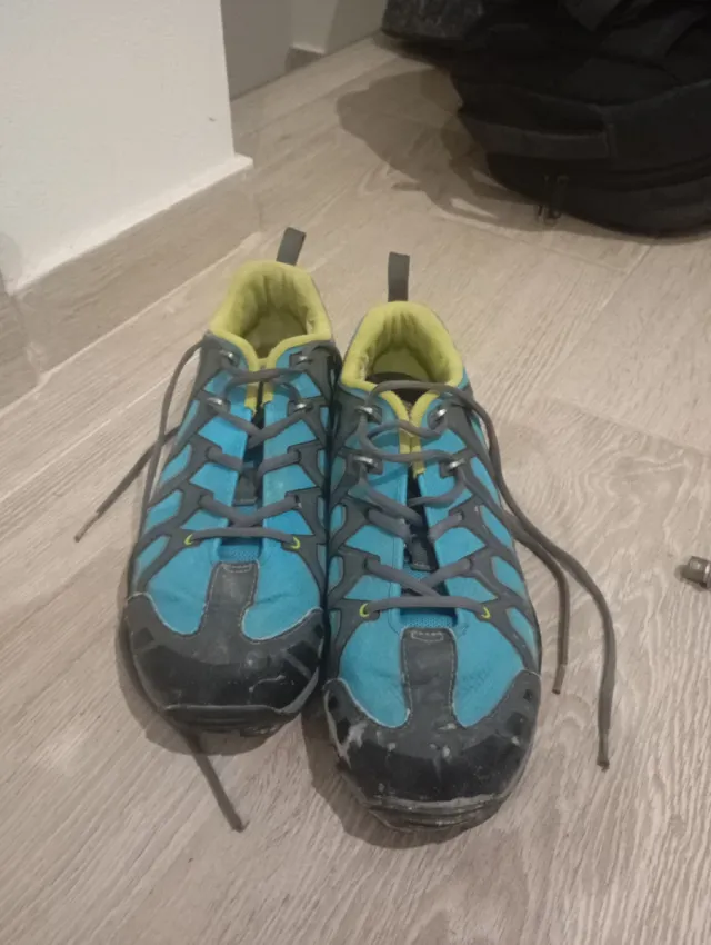 Zapatillas de ciclismo para montaña. Junto con los pedales 50€ - Color azul y gris. - Cierre con cordones.